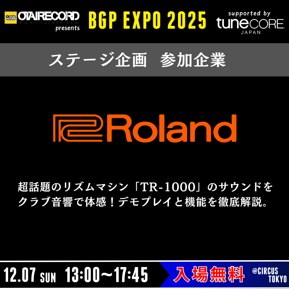 電子楽器、電子機器およびそのソフトウェアの製造販売ならびに輸出入を行うRolandの参加が決定!