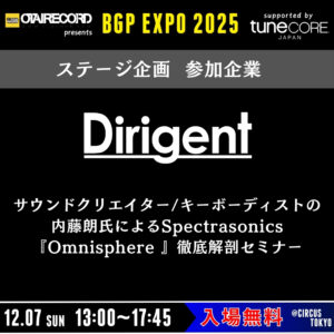 音楽制作に関わるソフトウェアおよびハードウェアの輸入販売を行うDirigentの参加が決定!
