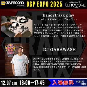 ポータブルレコードプレーヤー「handytraxx play」の魅力をDJ GABAWASHと商品企画担当川上氏の2名による解説セミナーをして頂きます!