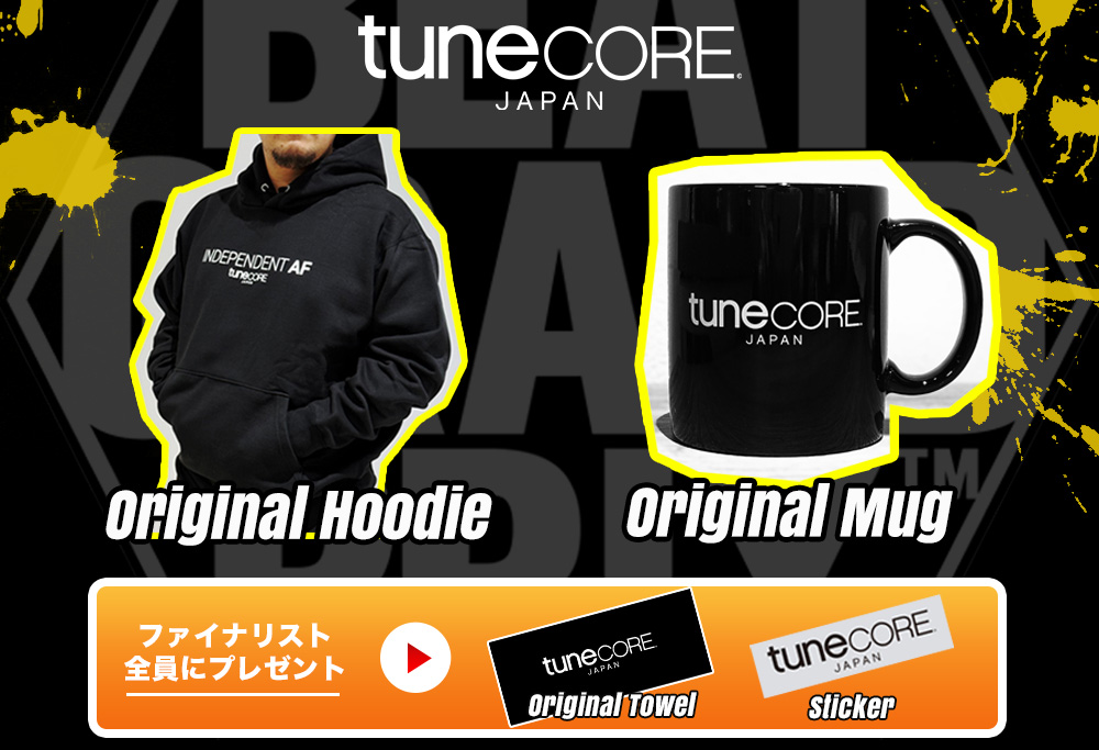 非売品のTuneCore Japanオリジナル・パーカー(サイズ:XL)&マグカップが優勝者にプレゼントされます!